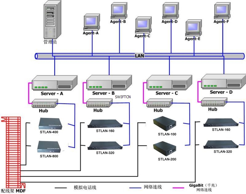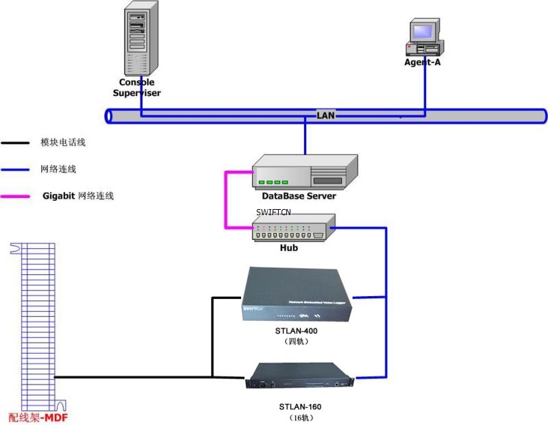 錄音存儲(chǔ)服務(wù)器與STLAN硬件通過標(biāo)準(zhǔn)TCP/IP協(xié)議網(wǎng)絡(luò)相連,因此不受限于服務(wù)器存放位置,錄音設(shè)備可以放在任何有網(wǎng)絡(luò)接口的地方。